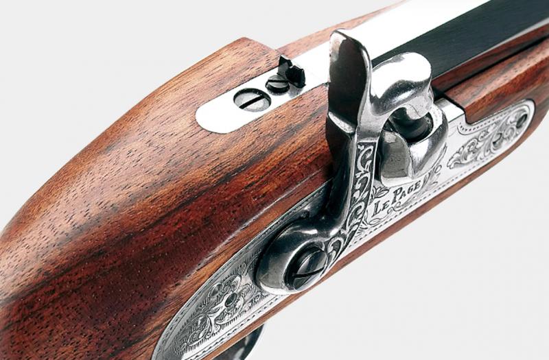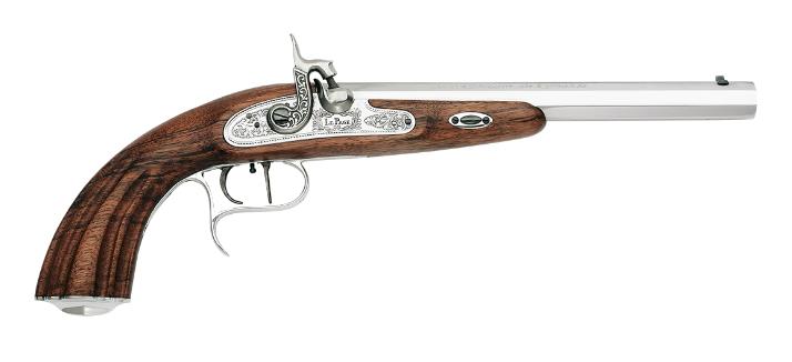 Tato elegantní perkusní pistole kombinuje historickou sofistikovanost , s moderní přesností. Je inspirována francouzskými soubojovými pistolemi z počátku 19. století. Zaujme vysoce kvalitními materiály a pečlivým řemeslným zpracováním.Leštěný mechanismus zámku zajišťuje rychlé zapálení, zatímco jemně nastavitelná spoušť umožňuje přesnou střelbu . Díky pečlivému řemeslnému zpracování a vysoce kvalitním materiálům, je tato pistole vynikající volbou pro nadšence do historických střelných zbraní a střelce s vysokými nároky na přesnost a estetiku.