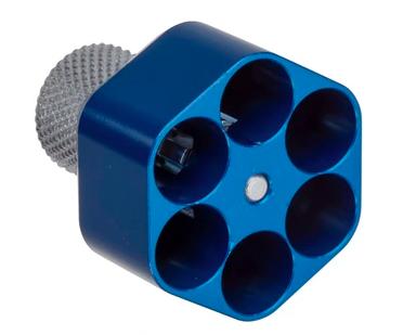 Tyto rychlonabíječe Pachmayr jsou vyrobeny z robustního hliníku pomocí přesného CNC procesu, na rozdíl od běžných rychlonabíječů. Polygonální tvar umožňuje extrémně kompaktní rozměry, díky čemuž je tento praktický nástroj vhodný i pro malé revolvery. Integrovaný O-kroužek zabraňuje chrastění nábojů, když jsou vloženy / upnuty a zároveň je bezpečně drží na místě . Náboje se uvolňují otočením velkého vroubkovaného knoflíku .