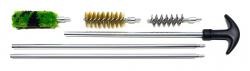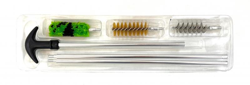 Praktické kompaktní čištění pro zbraně ,v ráži 20 . Tato sada obsahuje hliníkovou vytěrákovou tyč ,tvrdý drátěný kartáček , mosazný kartáček a lacetku .Tvrdý drátěný kartáček použijte k vyčištění hrubých nečistot a k následnému začištění můžete využít měkký mosazný kartáček , k závěrečnému doleštění a nanesení jemné olejové vrstvy , lacetku .