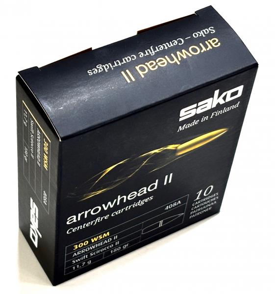 SAKO ARROWHEAD je poloplášťovou střelou s jádrem vyrobeným z čistého olova, které je pevně spojeno pájením k plášti vyrobenému z čisté mědi. Samotný plášť střely je velmi silný. Střela má ve špici expanzívní dutinu, která je chráněna plastovou špicí černé barvy, mající za úkol minimalizovat odpor vzduchu, chránit špici náboje uloženého v zásobníku před možným poškozením zpětným rázem zbraně a chránit špici náboje při podávání ze zásobníku do komory zbraně. Plastová špice a dutinka umožňují velmi rychlou expanzi střely a současnou retenci až 85% váhy. Střelivo SAKO laborované střelou SAKO ARROWHEAD II o různé váze má výborné balistické vlastnosti a plochou trajektorii.Střelivo SAKO laborované střelou SAKO ARROWHEAD II je vhodné pro střelbu na střední až těžkou zvěř na delší vzdálenosti (srnčí, daňčí, jelení, los, medvěd).