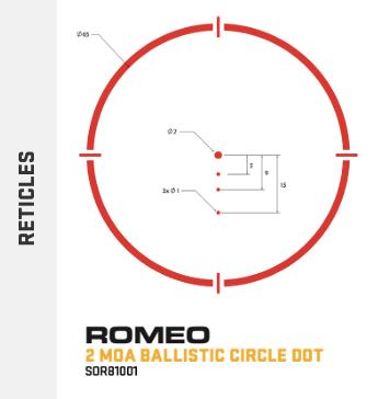Zaměřovací osnovy : 2 MOA Kolimátor s červeným balistickým kruhem