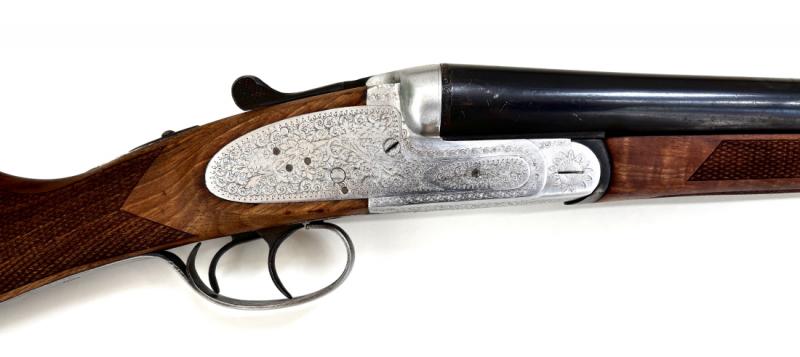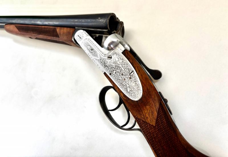 - Použitá broková dvojka je v pěkném / originálním stavu . Jde o systém Holand-Holand s vyhazovači a dvouspouští . Vývrty hlavní , jsou tvrdochromovány , čisté / lesklé . Na levé hlavní je malinká vmáčklina . Pažba je ořechová , zakončená gumovou botkou .
