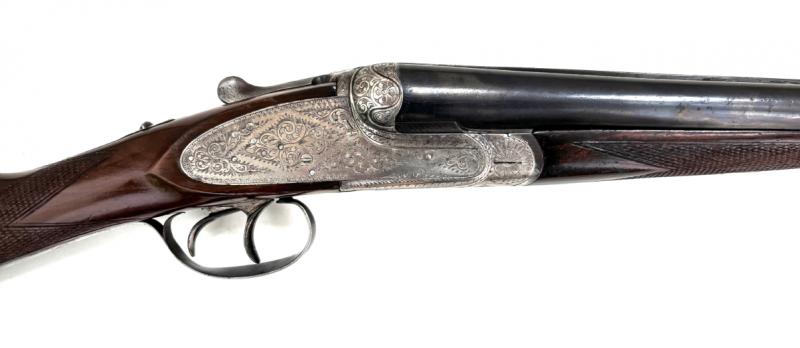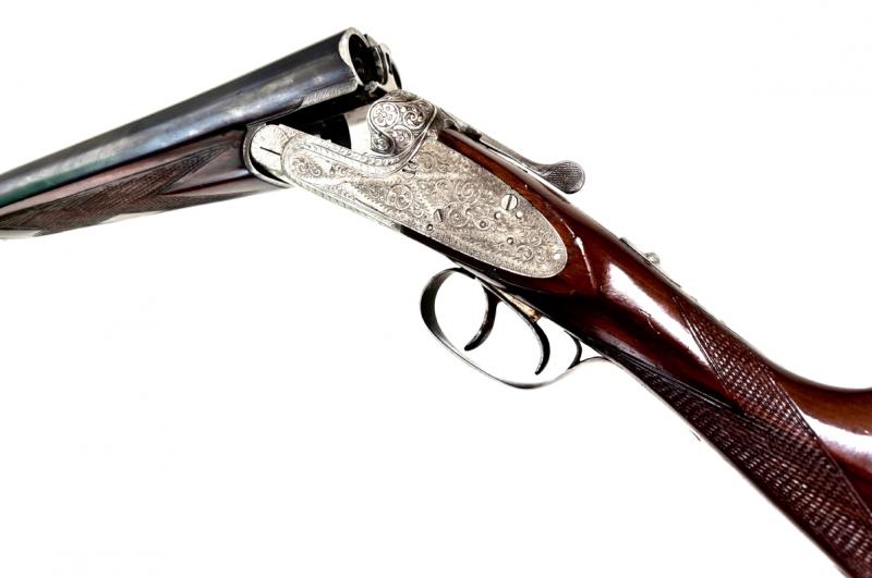 - Použitá španělská dvojka P.Gorosabel , je z vnějšku v pěkném stavu . Vývrty hlavní už toho opravdu dost zažily . Dvojka má dlouhé postranní desky alá Holand & Holand s pěknou rytinou . Má vytahovače . Ořechová pažba je ukončena gumovou botkou .