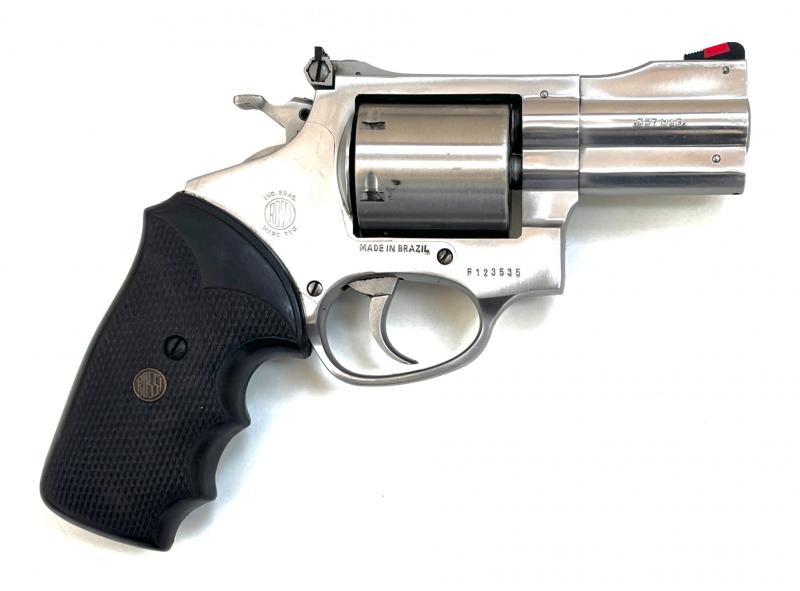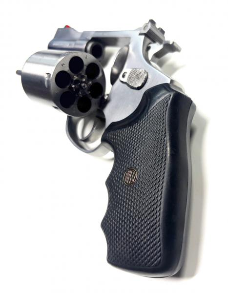 - Použitý revolver Amadeo Rossi je ve velmi pěkném stavu . Je celonerezový . Má pevnou mušku a stavitelné mikrometrické hledí .Pažbička je gumová a přispívá k utlumení zpětného rázu , při střelbě náboji .357 Magnum . Vývrt hlavně je čistý / lesklý . Z revolveru se moc nestřílelo , vypadá , že byl i jen minimálně nošený .
