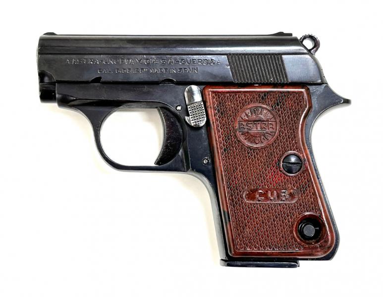- Použitá pistole Astra CUB , je v dobrém stavu . Je nově načerněná . Vývrt hlavně má čistý / lesklý .