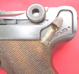 Námi zapůjčená zbraň,sériové číslo bez dodatkového písmene, odpovídá modelu z předposlední dodávky. Hlaveň ráže 9 mm o délce 98 mm je značena zespod na hlavni výrobním číslem. Kompletně je výrobní číslo ještě vyraženo zpředu na těle zbraně. Na pravé straně pouzdra závěru je vyražena armádní přejímací značka v podobě bulharského lva. Stejnou značku (ve větší heraldické velikosti-kompletní státní znak) spatříme na střední části závěru. Nad nábojovou komorou je monogram výrobce-propletená písmena DWM. Závěr je opatřen posledními dvěma ciframi výrobního čísla. Záchyt úderníku odpovídá staršímu modelu (prodloužený). Poslední dvě cifry se opakují na drobných dílech (pojistka,spoušť,...). Demontážní páčka,spoušť a záchyt zásobníku jsou popuštěny na žluto. Povrchová ochrana černěním je tvořena ještě v této době potíráním roztoku. Vnitřní plochy jsou proto v "bílém stavu". Neobvyklostí oproti běžným provedením je označení v azbuce pro polohu zajištěno -ogň. Smysl pohybu pojistky sice stejný,značení je naopak. Pokud běžnou P-08 zajistíme-objeví se nápis Gesichert (zajištěno)- u námi testovaného modelu je to obráceně. V poloze zajištěno je nápis ogň schován za křidélko pojistky,v odjištěném stavu nápis vidět. Na levé straně vytahovače pleň -česky nabito. Na zadní hraně těla zbraně chybí výstupek s drážkou pro úchyt nástavné pažby. Část je hladká doplněná hranatým závěsným okem.